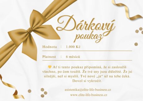 Dárkový poukaz na koučink, mentoring nebo ELITE Coach AI je investicí do růstu, radosti a osobní síly. Daruj svým blízkým prostor, kde mohou rozkvést a stát se svou nejlepší verzí.